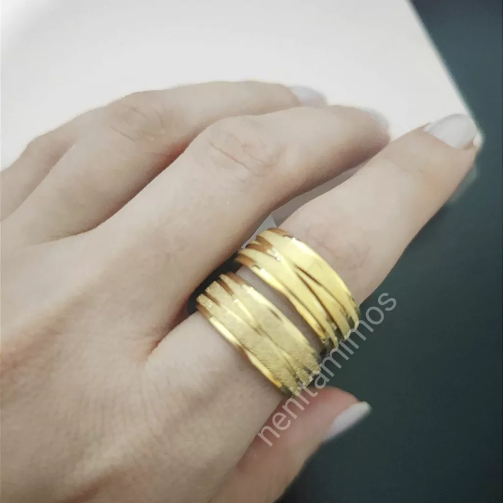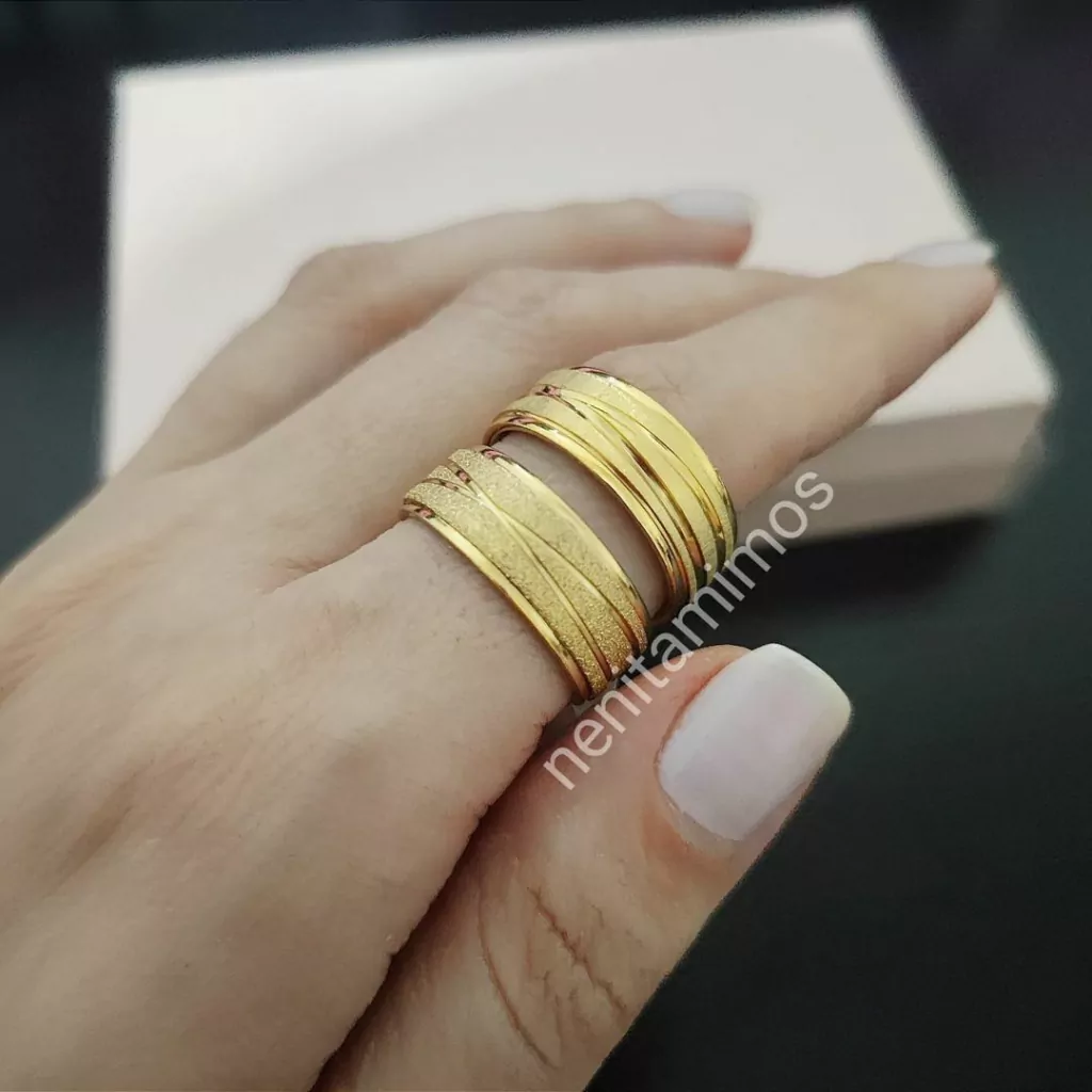 Anel aliança grossa 8mm em aço inoxidável com banho dourado com ou sem brilho