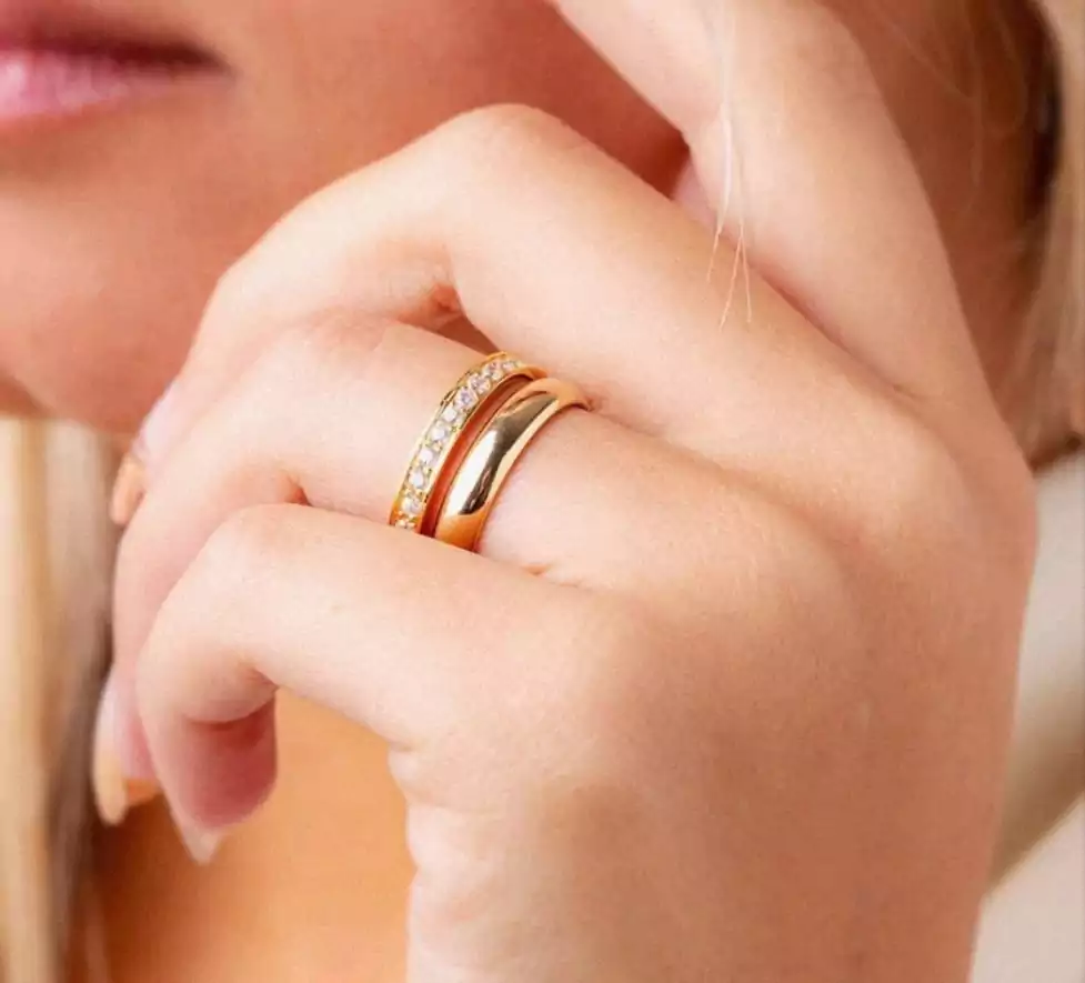 Anel aparador em aço inoxidável prateado ou com banho dourado aparador de aliança brilhante