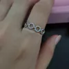 Anel círculos pontilhados regulável em aço inoxidável prateado geometrico