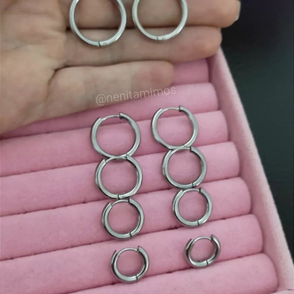 Brinco argolinha click em aço inoxidável prateado ou com banho dourado