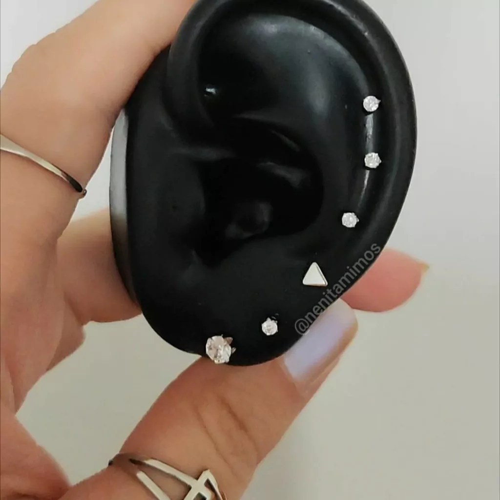Brinco mini triângulo em aço inoxidável hipoalergenico segundo furo tarraxa
